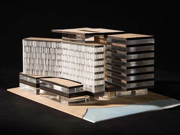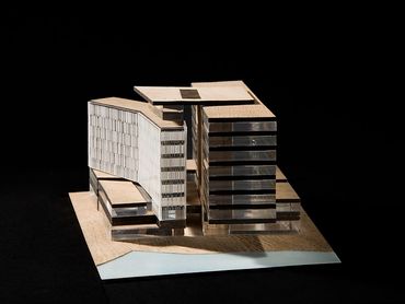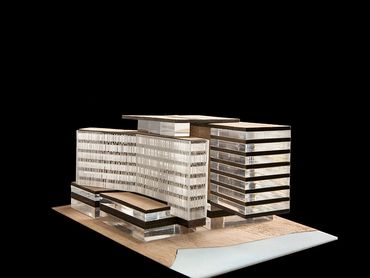 Die horizontale Schichtung des Objektes erklärt sich aus seiner Nutzung: ein zweigeschossiger Sockel für Geschäfte und Praxen, darüber in zwei Teilen bis sieben Geschosse Büroflächen. Die Basis ist in drei Teile gebrochen. Fussgängerübergänge im ersten Geschoss und Lichteinfälle von oben bereichern die abkürzenden Wege in die angrenzenden Überbauungen. Die Knickung des westlichen Bürotraktes leitet, von der U-Bahn kommend, ins Areal, die Konzeption der Fassade verstärkt das Perspektiverleben. Der zweite Bürotrakt liegt parallel zur Richtung der östlich anschliessenden Gebäude. Die Mitte zwischen beiden Teilen bleibt offen, nimmt die Erschliessung auf und gibt den Durchblick frei; über das Dach des „Panoramas“ sind beide Teile miteinander verklammert.