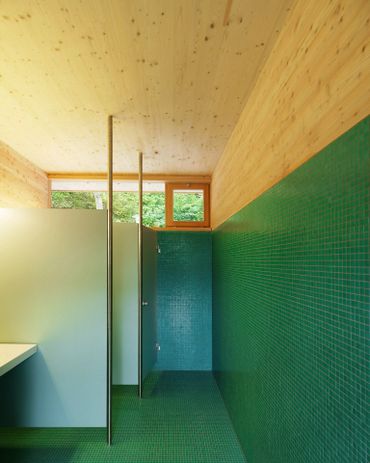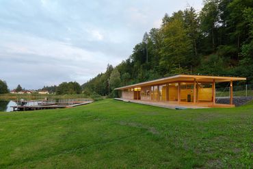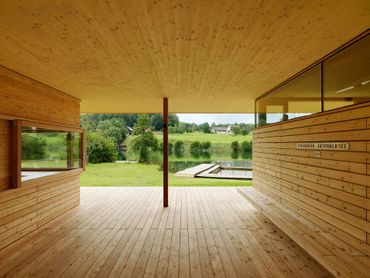 Das neue Badehaus sieht sich in der Tradition Kärntner Bauten am See: es besteht fast ausschliesslich aus Massivholz.